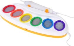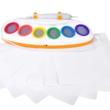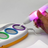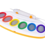 Základna s barevnými podložkami umožní rychle zvolit odstín. Stačí se dotknout štětcem a přenést barvu na papír – barvy se po chvíli rozsvítí.