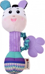Roztomilé chrastítko se zvířátkem spojuje měkoučký plyš s bezpečným silikonovým kousátkem pro citlivé dásně. Nabízí jemné zvuky, šustící ouška a lehký, snadno uchopitelný tvar, který podporuje rozvoj smyslů a jemné motoriky už od prvních měsíců.