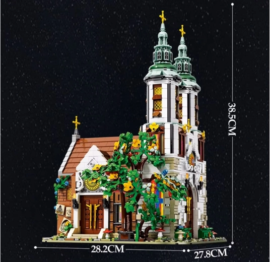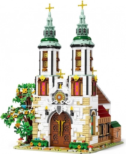 Tato pokročilá stavebnice věrně zachycuje siluetu a výzdobu jednoho z nejstarších chrámů Krakova. Na modelu vynikají dvojice vysokých věží se zlatými kříži, detailní portál, vitrážová okna z barevných průhledných kostek a bohaté exteriérové prvky se zelení. Interiér zdobí oltář se zlatými detaily, svícny, květiny a lavice.