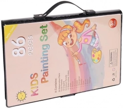 Sada na malování obsahuje 86 dílů, které poskytují široký výběr pro kreslení a malování – 12 pastelových tužek, 24 silných fix, 12 olejových pastelů, 12 voskových pastelů, 12 akvarelových barev, houbičku, gumu, štětec, nůžky, tužku, ořezávátko, lepidlo, pravítko, malířskou paletu a 5 barevných spon.