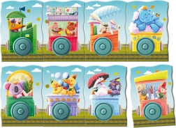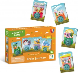 - 8 magnetických dílků s motivy vlaků a zvířat