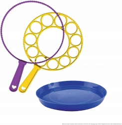 Jedna obruč vytváří ohromné bubliny, druhá promění vzduch v mrak drobných bublinek – stačí namočit a mávnout.