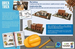Staňte se stavitelem a krok za krokem vybudujte realistické staveniště z přírodních hliněných cihliček. Každou cihlu položíte jako ve skutečnosti, prkénka můžete řezat na míru a díky vodou rozpustnému lepidlu lze model kdykoli rozebrat a začít znovu. Hotovou stavbu oživíte přiloženými dekoracemi a papírovými figurkami.