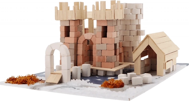 Staňte se stavitelem a vybudujte si svůj vlastní ledový zámek krok za krokem. Skládejte cihlu za cihlou, řežte a lepte dřevěná prkénka, dotáhněte detaily a ozdobte stavbu dekoračními prvky. Přiložené papírové figurky dodají vašemu dílu příběh a atmosféru.
