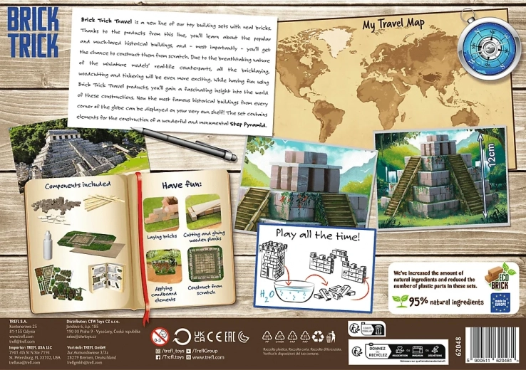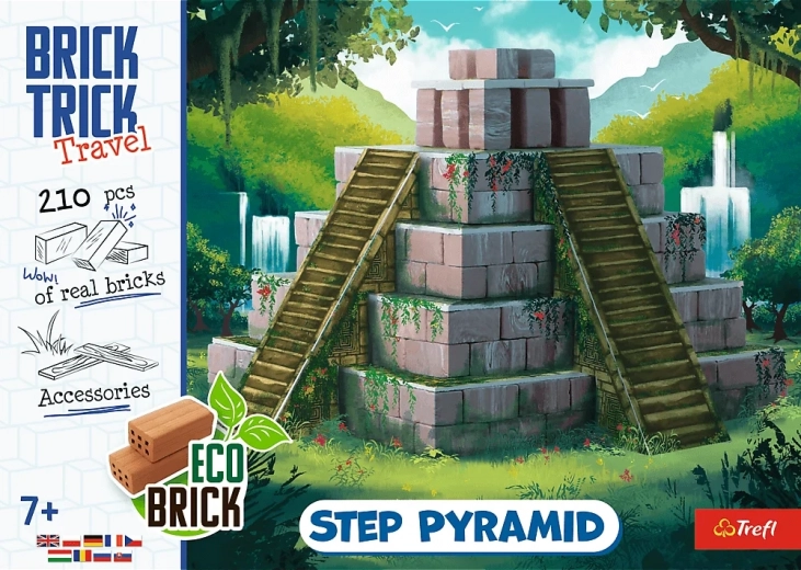 Trefl Brick Trick Travel: Pyramida s 210 hliněnými cihličkami. Reálné materiály, vodou rozpustné lepidlo, opakované stavění a rozvoj zručnosti.