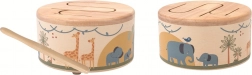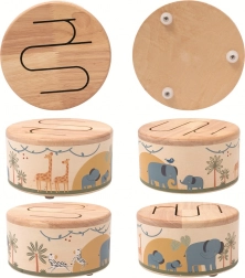Objevte radost z prvních rytmů s dětským dřevěným bubínkem se safari motivy. Tento bezpečný a odolný bubínek z přírodního dřeva s roztomilými ilustracemi slonů, žiraf a zeber je dodáván s paličkou a skvěle padne do malých ruček. Podporuje jemnou motoriku, rytmické cítění a hudební vnímání – ideální volba pro první hudební objevování.