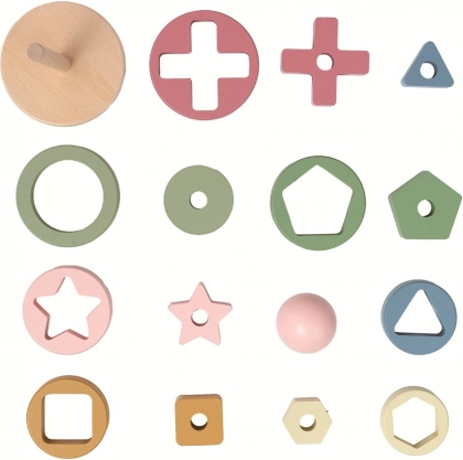 Objevujte svět barev a tvarů s dřevěnou hračkou pro nejmenší! Tato chytrá skládačka kombinuje vkládání a stohování kroužků s různými výřezy, které je potřeba správně seřadit. Rozvíjí jemnou motoriku, koordinaci ruka-oko a rozpoznávání tvarů a velikostí. Přírodní dřevěné provedení v jemných zemitých odstínech skvěle zapadne do dětského pokojíčku.