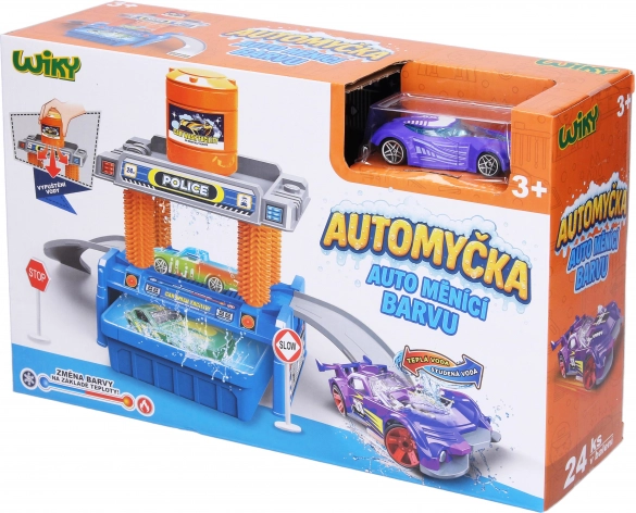 Zábavný set pro malé řidiče: myčka aut o délce 35 cm s autíčkem, které mění barvu podle teploty. Stačí použít studenou nebo teplou vodu a sledovat kouzelnou proměnu. Myčka má měkkou nádržku na vodu pro snadné dávkování a autíčko s volně běžícími koly pro plynulou jízdu. Ideální hračka pro rozvoj fantazie a smyslového vnímání.