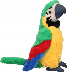 Na výběr máte ze tří atraktivních variant: elegantní bílý kakadu se žlutou chocholkou, veselý zelený papoušek a výrazný červeno‑žluto‑modrý ara. Každý z nich má měkké tělíčko, detailně zpracovaná křídla a stabilní posed pro snadné vystavení.