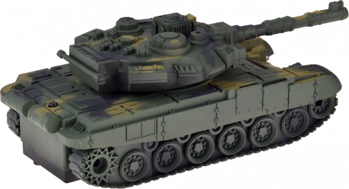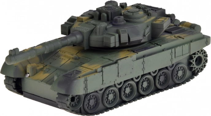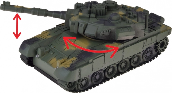 RC tank v zeleném maskování věrně napodobuje skutečnou vojenskou techniku a nabídne plynulou jízdu vpřed/vzad, otáčení na místě i ruční otočení věže o 360° s doprovodným mechanickým zvukem. Světelné efekty a realistické zvuky střelby umocní atmosféru bitev doma i venku.