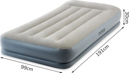Jednolůžková nafukovací matrace INTEX s rozměry 191 × 99 × 30 cm je ideální pro hosty, do kempu i na cesty. Má vestavěnou elektrickou pumpu pro rychlé nafouknutí, sametově hebký velurový povrch pro pohodlí a moderní technologii Dura-Beam/Fiber-Tech pro stabilitu a dlouhou životnost. Součástí je opravná záplata.