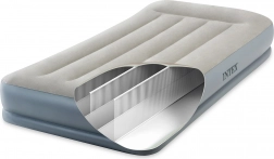 Užijte si pohodlný spánek kdekoli. Tato jednolůžková matrace INTEX kombinuje odolné PVC s flockovaným (velurovým) povrchem, který je příjemný na dotek a méně klouže. Integrovaná elektrická pumpa šetří čas i námahu – během pár minut je připravena k použití.