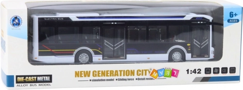 Kovový městský autobus se světly a zvuky 1:42 bílý