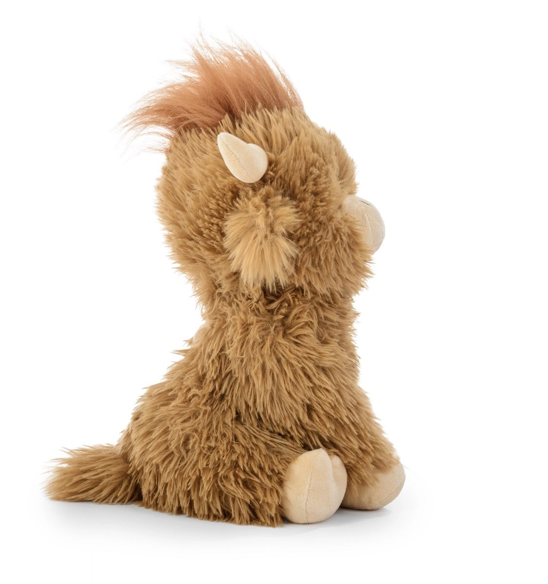 Tato plyšová kráva inspirovaná plemenem Highland zaujme dlouhou, huňatou srstí, jemnými rohy a milým úsměvem. Je navržena tak, aby byla maximálně hebká, bezpečná a odolná pro každodenní hraní i mazlení.