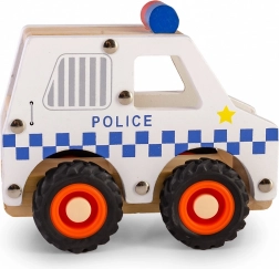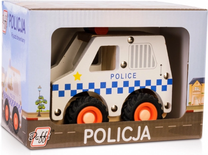 Robustní dřevěné policejní auto s měkkými gumovými koly nabízí bezpečnou a zábavnou hru pro děti. Je lakované zdravotně nezávadnými barvami, má výrazné policejní značení a hladce jezdí pro push-and-go zábavu. Podporuje jemnou motoriku, fantazii a rolové hry policie.