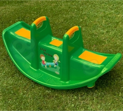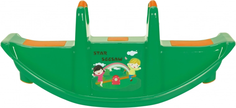 Bezpečnost zajišťují integrované úchyty, protiskluzová sedátka a zaoblené hrany bez ostrých částí. Kvalitní plast odolný vůči počasí snese intenzivní používání a snadno se udržuje. Stabilní klenutá základna poskytuje plynulý a plynule kontrolovaný pohyb tam a zpět.