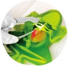 Tato vzdělávací sada přináší hravou formou základy anatomie. Uvnitř najdete žábu o velikosti 16 cm s realisticky ztvárněnými orgány a kostrou, které jsou pokryty zeleným slizem. Jednotlivé prvky lze snadno vyjmout, prozkoumat a opět vložit zpět.