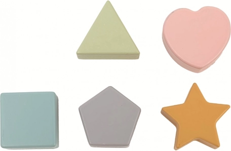 Pět vkládacích tvarů v lákavých barvách pomáhá dětem rozpoznávat tvary, barvy a trénovat přesnost úchopu i prostorové vnímání.