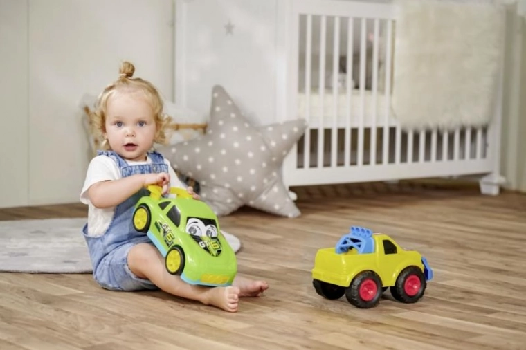 Objevte velká a odolná plastová autíčka, která děti nadchnou svou velikostí 27 cm, přátelským výrazem a plynulým pohybem na volnoběh. Každý model je navržen pro malé řidiče – zaoblené tvary, bezpečné hrany a snadné uchopení zaručí pohodlnou a bezpečnou hru.