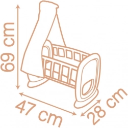 Lehký látkový baldachýn snadno sejmete a vyperete. Vytváří útulný koutek a chrání panenku před světlem během odpočinku.