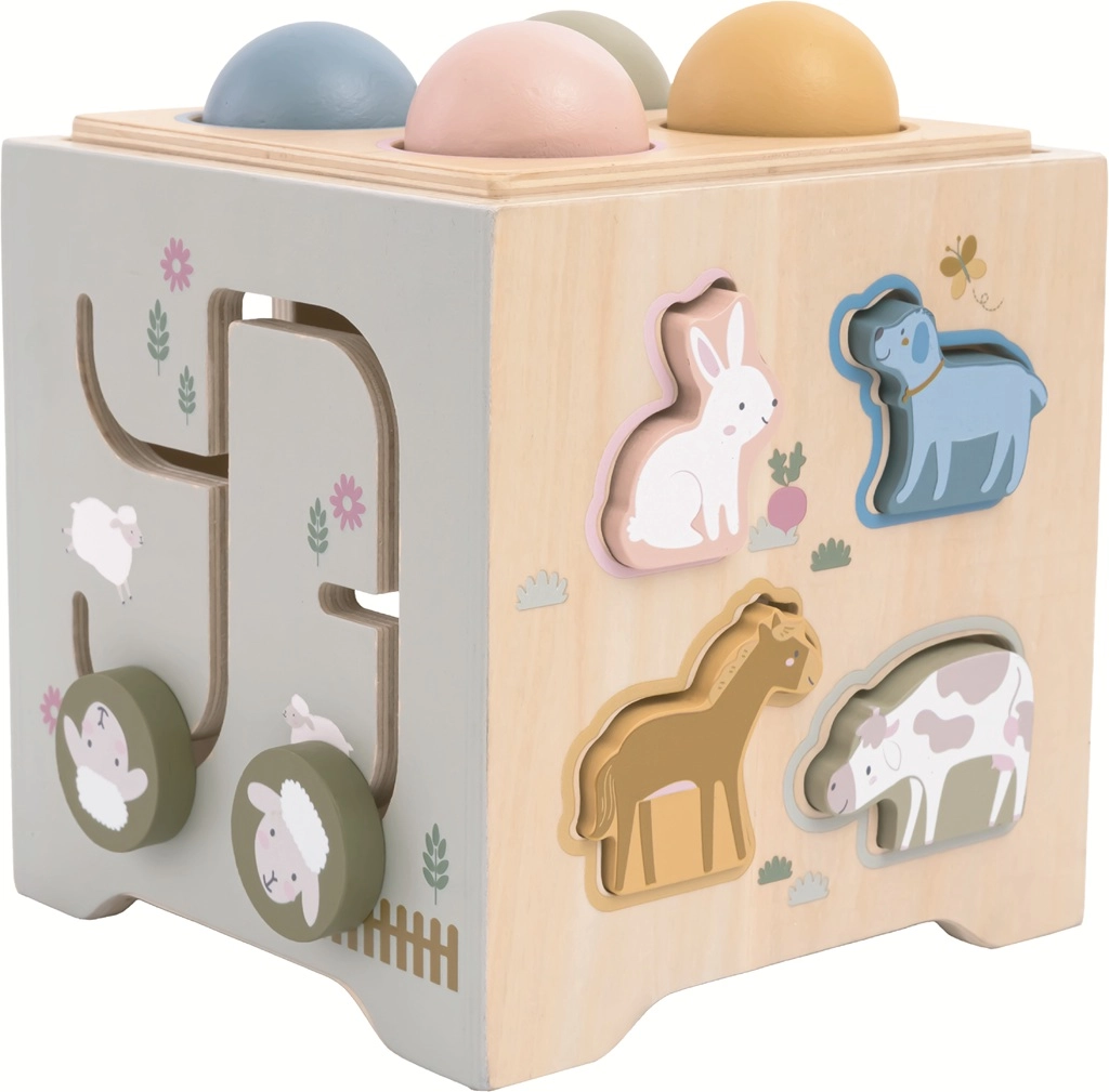 Objevte zábavné učení s dřevěnou motorickou kostkou s motivem farmy od 2Kids Toys! Nabízí dětem pestrou škálu aktivit, které rozvíjejí jemnou motoriku, logické myšlení a koordinaci ruka–oko. Každá strana přináší jinou výzvu: vkládačky tvarů a zvířátek, ozubená kolečka, počítání i zatloukací hru. Vyměnitelná víka rozšiřují herní možnosti a všechny díly lze uklidit dovnitř kostky.