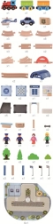 Tematické doplňky jako policejní auto, budova stanice, světla, značky a figurky obohacují hru o příběhy a učí základy dopravní výchovy.