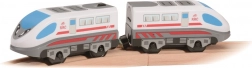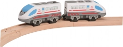 Moderní vysokorychlostní vlak na baterie pro dřevěné vláčkodráhy potěší každého malého strojvedoucího. Stylová modro-bílá souprava s realistickými detaily, magnetickým spřažením a samostatnou jízdou nabízí spoustu akce a rozvíjí jemnou motoriku, koordinaci i fantazii. Kompatibilní s většinou běžných dřevěných kolejí.