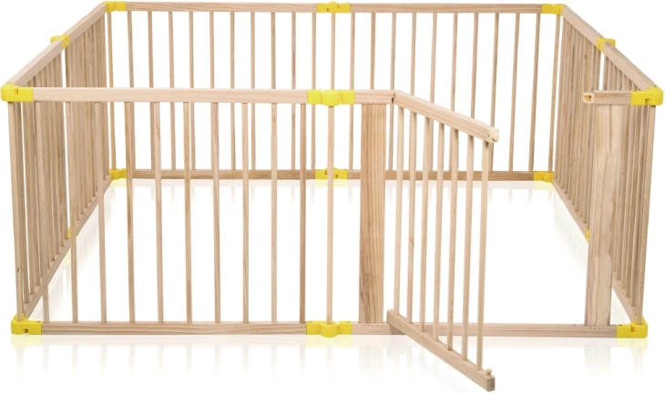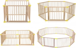 Tato prostorná dřevěná ohrádka XXL je ideálním řešením pro rodiče, kteří chtějí dítěti vytvořit stabilní a bezpečné zázemí doma i na návštěvách. Osm pevných panelů s odolnými plastovými spojkami lze snadno poskládat do čtverce, obdélníku, šestiúhelníku nebo osmiúhelníku – přesně podle prostorových možností a aktuální potřeby.