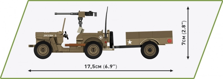 Stavebnice obsahuje 200 kostek a 2 figurky vojáků s příslušenstvím. Přívěs lze snadno zapojit a odpojit, kola jsou pojízdná a kulomet se otáčí – ideální pro vytváření vlastních scén z WWII. Skvělý dárek pro fanoušky vojenské techniky a mladé stavitele.