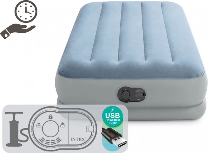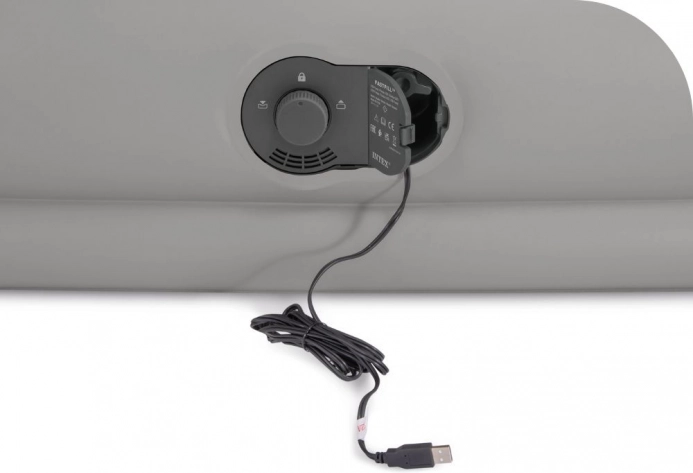 Vestavěná USB pumpa 5V/2A nafoukne matraci přibližně za 240 sekund. Napájíte ji jednoduše z powerbanky, nabíječky telefonu, USB portu nebo autonabíječky – ideální na doma i na cesty. Certifikace AirLock garantuje těsnost a spolehlivost i při častém používání.