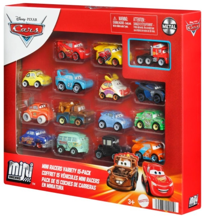 Užijte si svět DISNEY PIXAR Cars s bohatou sadou 15 mini autíček, která věrně kopírují oblíbené postavy. Každé autíčko má kovovou karoserii, otočná kola a ikonické detaily pro realistickou hru doma i na cestách. Tato hotová minikolekce je skvělým dárkem pro děti od 3 let a fanoušky série Cars.