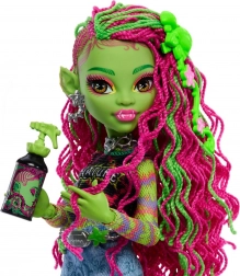 Objevte rostlinnou hvězdu světa MONSTER HIGH. Venus McFlytrap září v barevném outfitu s potiskem, džínovými šortkami a platformovými botami s motivem lián. Díky kloubovým končetinám lze panenku snadno pózovat a vytvářet fantazijní scény, které děti milují.