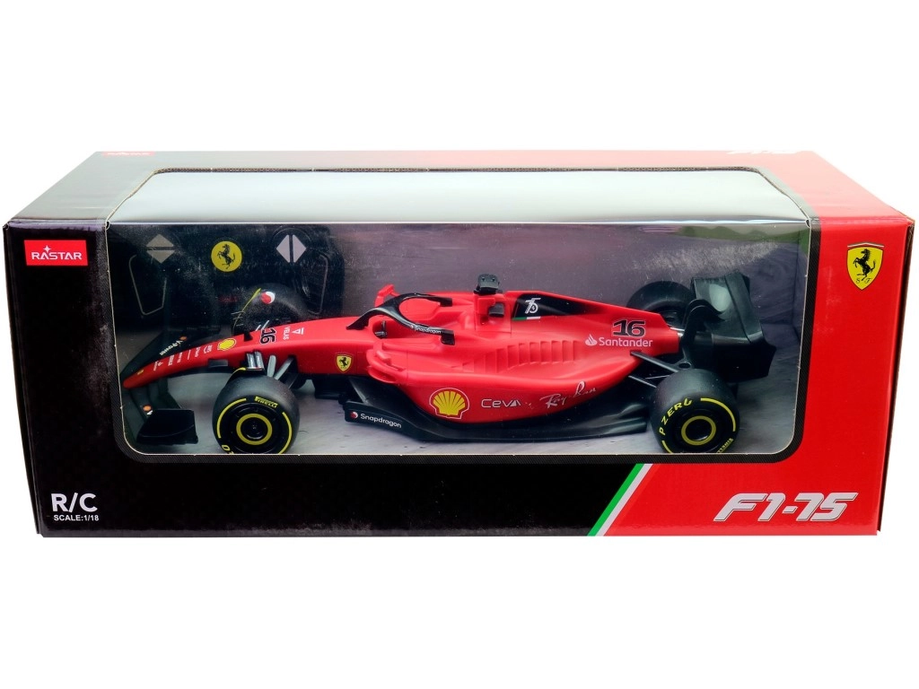 Užijte si adrenalinové závody s modelem RC formule FERRARI F1-75 v měřítku 1:18. Tento detailně zpracovaný vůz nabízí autentický vzhled F1, snadné ovládání a skvělý poměr ceny a zábavy pro děti od 6 let. Vyroben z kvalitního plastu, připraven k jízdě po vložení 5× AA baterií.