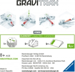 Rozšiřte svůj svět RAVENSBURGER GraviTrax o elektrický kanón, který dodá vašim kuličkám pořádnou dávku energie. Stačí stisknout zelené tlačítko a kulička vystřelí vpřed – ideální pro dlouhé rovinky, stoupání i překonávání náročných překážek.