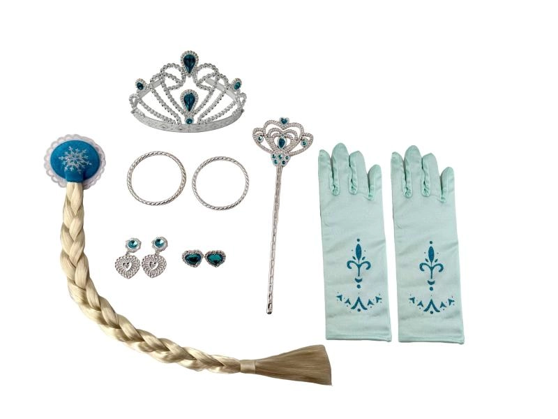 Proměňte se během chvilky v oblíbenou princeznu díky této okouzlující sadě šperků s připevněným dlouhým copem. Ideální pro kostýmy, karneval i domácí hraní. Lesklé šperky, dlouhý spletený cop a snadné nasazení potěší každou malou parádnici.