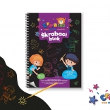 Tento škrabací notes přináší dětem i dospělým zábavnou formu tvoření. Pod tmavou vrstvou se ukrývá barevný podklad, který se odhalí jednoduchým poškrábáním. Vytvářejte obrázky, nápisy, přání nebo malé plakátky – fantazii se meze nekladou.