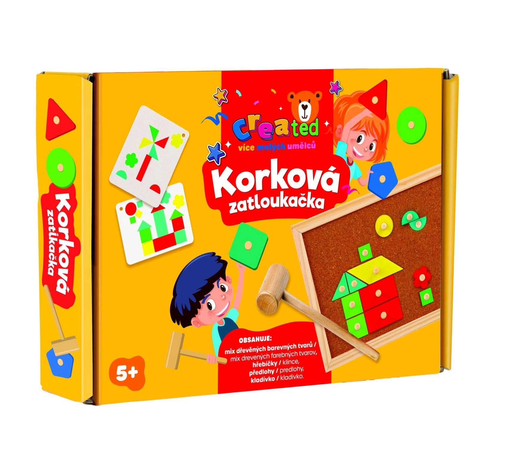 Klasická korková zatloukačka pro malé stavitele z kvalitního dřeva rozvíjí jemnou motoriku, představivost i trpělivost. Balení obsahuje dřevěné tvary, kladívko, hřebíčky a korkovou desku – děti mohou tvořit vlastní obrázky nebo skládat podle předloh.