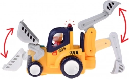Model nabízí automatický režim s funkcí „udeř a jeď“ pro samostatný pohyb a režim dálkového ovládání s dvousměrným ovladačem. Pohyblivá přední lžíce a kloubové výkopové vědro spouštějí realistické zvuky. Součástí je i figurka řidiče (aktivuje jízdu se zvukem a světly) a malý míček pro ještě více herních možností.