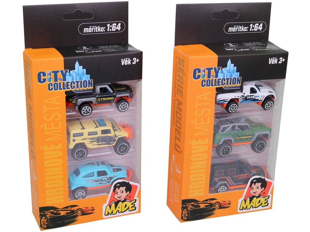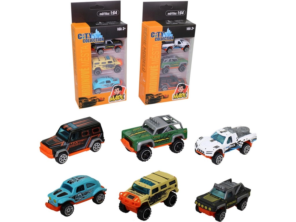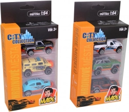 Užijte si rychlou jízdu a velké závody s sadou tří kovových autíček v měřítku 1:64. Kvalitní kovovo–plastové provedení, dvě různé varianty a balení typu window box potěší každého malého závodníka od 3 let.