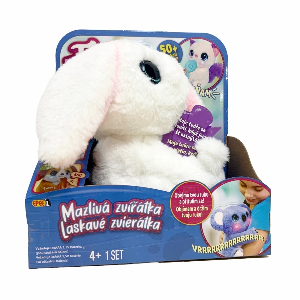 Králíček Rozárka je ideálním kamarádem na mazlení i hru. Díky chytrým senzorům reaguje na doteky a interakci – umí se přitulit, obejmout ručičku a vyjádřit radost i potřeby pomocí světelných tvářiček a roztomilých zvuků.