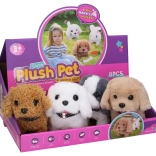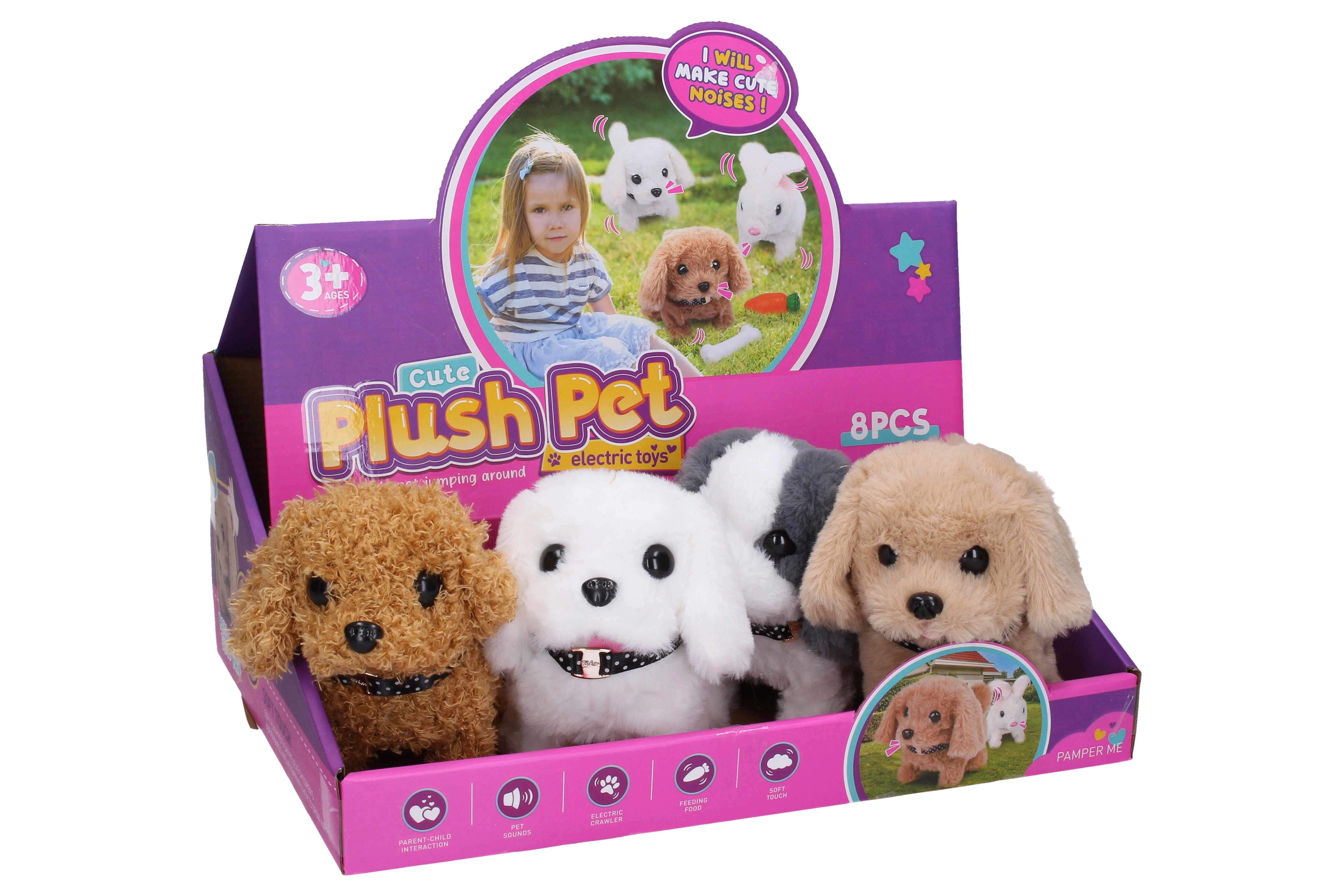 Roztomilý chodící plyšový pejsek o velikosti 16 cm přináší dětem spoustu zábavy. Po zapnutí chodí, hýbe ocáskem a štěká. K dispozici jsou 3 barevné varianty (bílá, hnědá, žlutá). Snadné ovládání díky ON/OFF přepínači na spodní straně. Napájení 2× AA bateriemi (nejsou součástí).