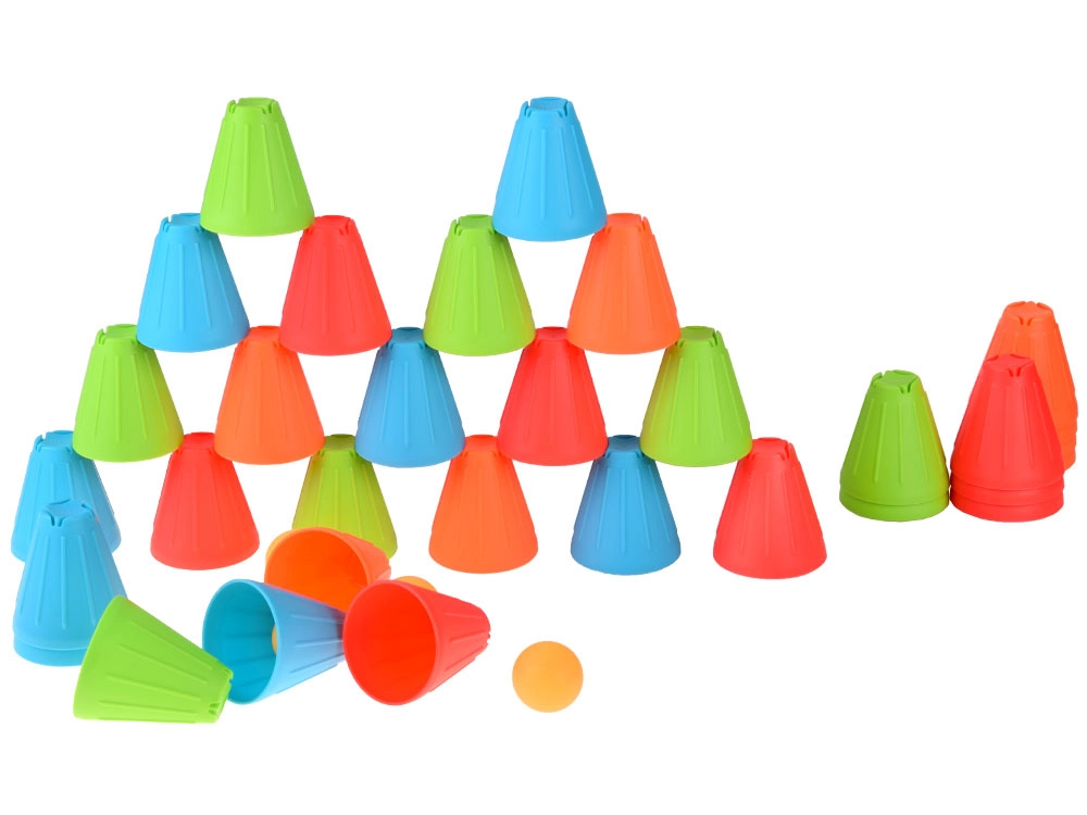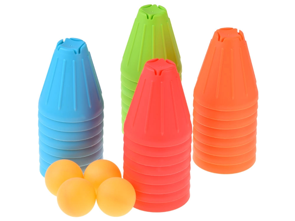 Kuželové kelímky s vnitřními prohlubněmi se snadno spojují a drží tvar. Ideální pro stavění věží, drah i překážek.