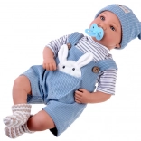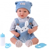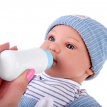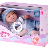 Interaktivní panenka typu miminko zaujme realistickými rysy tváře, dlouhými řasami a výraznýma očima. Má měkké tělíčko pro snadné mazlení a plastovou hlavičku i končetiny pro odolnost při každodenní hře. Stylový outfit v modrém, nebo šedém manšestru se skvěle doplňuje s pruhovaným tričkem a pletenou čepičkou.