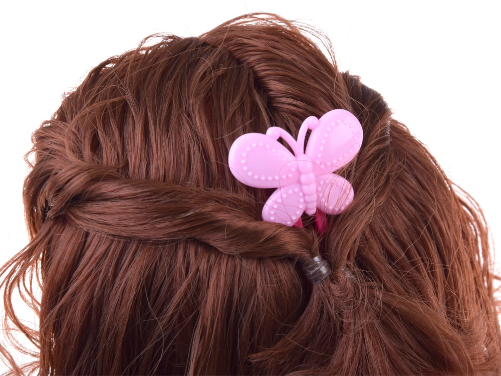 Roztomilá růžová spona ve tvaru motýlku spolehlivě podrží prameny a dodá hotovým účesům hravý akcent.