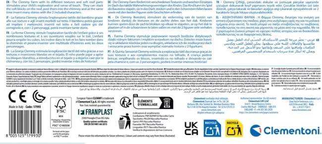 Objevte hravou sadu pro nejmenší: smyslovou farmu CLEMENTONI Clemmy s měkkými kostkami, mechanickými funkcemi a dvěma milými postavičkami. Děti mohou kostky vkládat okny i střechou, zkoumat různé textury, otáčet větrníkem a procvičovat jemnou motoriku i logické myšlení. Ideální pro věk 6–36 měsíců, bez nutnosti baterií.