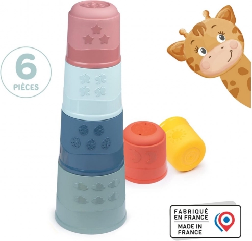 Oblíbená klasika pro miminka a batolata: stohovací kelímky LITTLE SMOBY v pestrých barvách lákají ke stavění, třídění i hraní ve vodě. Každý z 6 kelímků má jiný motiv a otvory, kterými může protékat voda – ideální zábava do vany, pokojíčku i na písek.