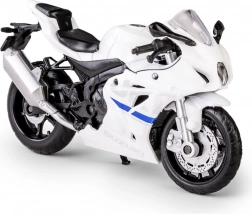 Detailně propracovaný model motocyklu SUZUKI GSX‑R1000 v měřítku 1:18 je ideální volbou pro sběratele, nadšence do supersportů i jako stylový dárek. Kombinuje kvalitní materiály s autentickými detaily a působivým lakem v bílé barvě.