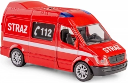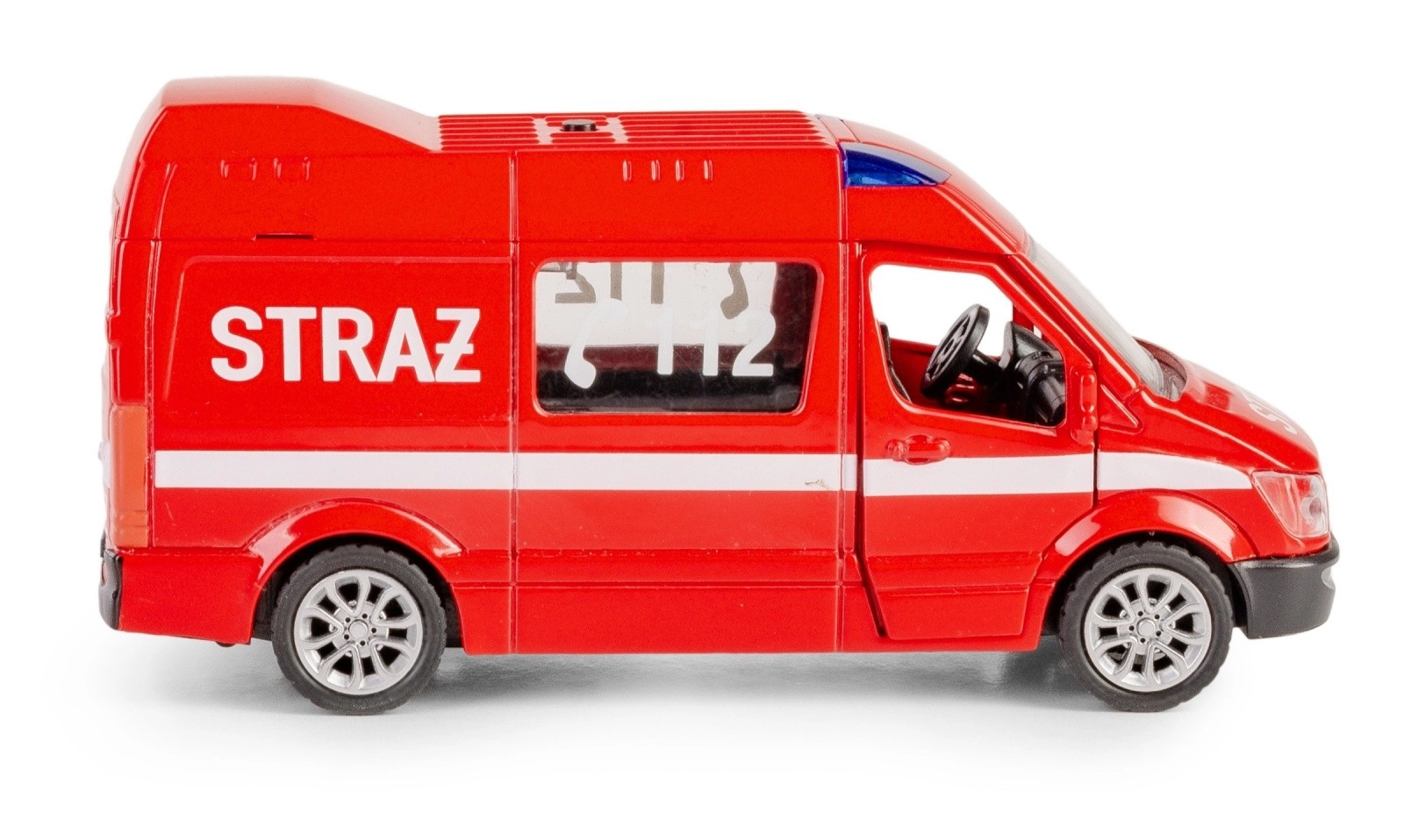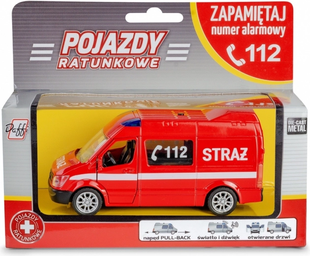 Realistický kovový model záchranného vozidla typu van ze série hasiči, záchranná služba a policie. Nabízí pull-back pohon, otevírací dveře a světelné a zvukové efekty, díky nimž je hra ještě zábavnější a poučná. Na obalu najdete tísňové číslo a základní pravidla chování v krizových situacích.