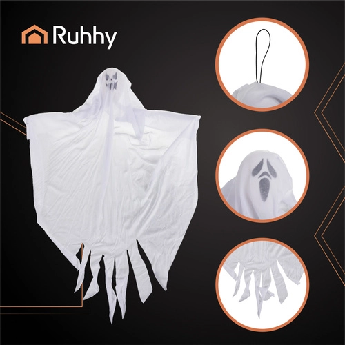 Vytvořte si doma i na zahradě mrazivou atmosféru s sadou tří závěsných duchů RUHHY o výšce 75 cm. Lehká, bílá textilie se na větru pohybuje a vytváří dojem levitujících přízraků. Každý duch má jiný výraz, což působí ještě autentičtěji. Ideální na Halloween, tematické párty, výzdobu domu, zahrady i provozoven a díky snadnému zavěšení je instalace otázkou chvilky.