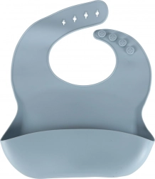 Měkký silikonový bryndák s nastavitelným zapínáním a širokou kapsou zachytí drobky i tekutiny a udrží oblečení čisté.